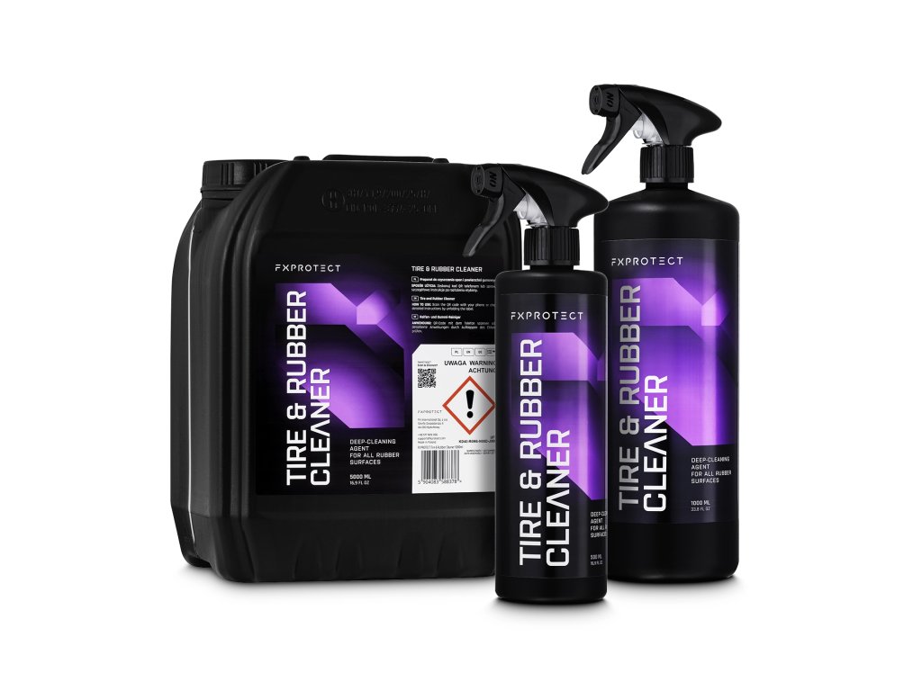 FX PROTECT Tire & Rubber Cleaner je profesionální čisticí prostředek navržený pro důkladné čištění pneumatik, gumových lišt, těsnění a plastových částí exteriéru.