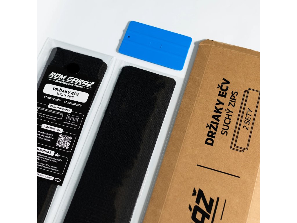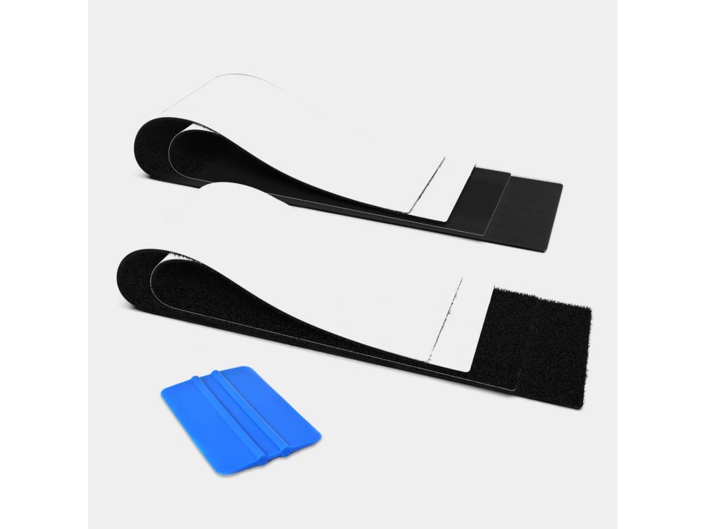 Povrch je nutné důkladně očistit a odmastit. Suchý zip lze jednoduše upravit na požadovanou velikost. Po správné aplikaci drží pevně i při běžném mytí vozu.