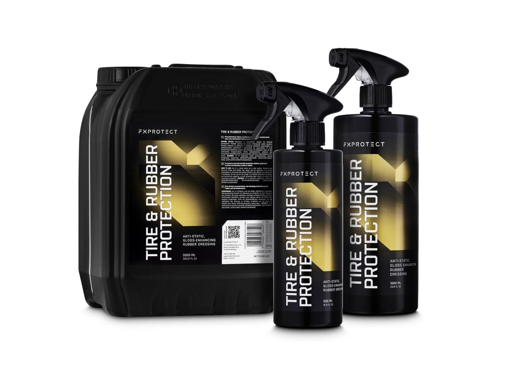 FX PROTECT Protection Rubber je profesionální dressing určený k ochraně a oživení všech pryžových částí vozidla – pneumatik, těsnění, lišt či plastových lemů.