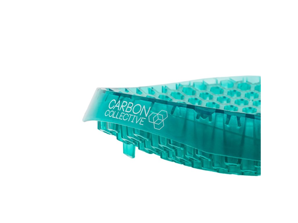 🧽 Carbon Collective Mitt Scrub Grit Guard – Clear Dark Teal posouvá klasický Grit Guard na úplně novou úroveň. Na rozdíl od běžných mřížek umístěných na dně kbelíku je tato mřížka uchycena ke stěně kbelíku a má šikmý, ergonomicky zakřivený tvar, díky kterému můžete drhnout mycí rukavici nebo houbu o její plochu.